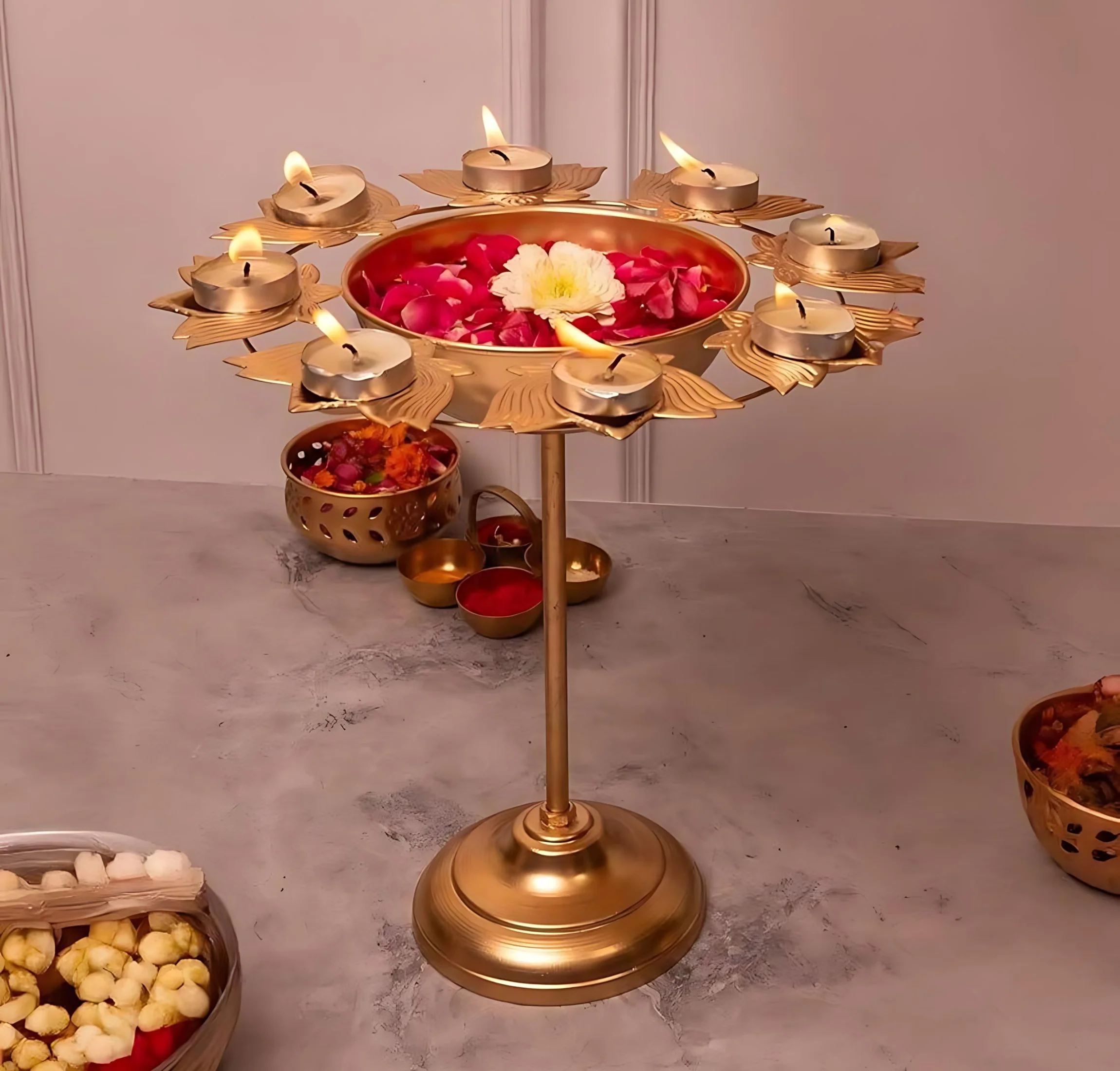 Aesthetic Standing Floral Kamal Diya Urli for Diwali