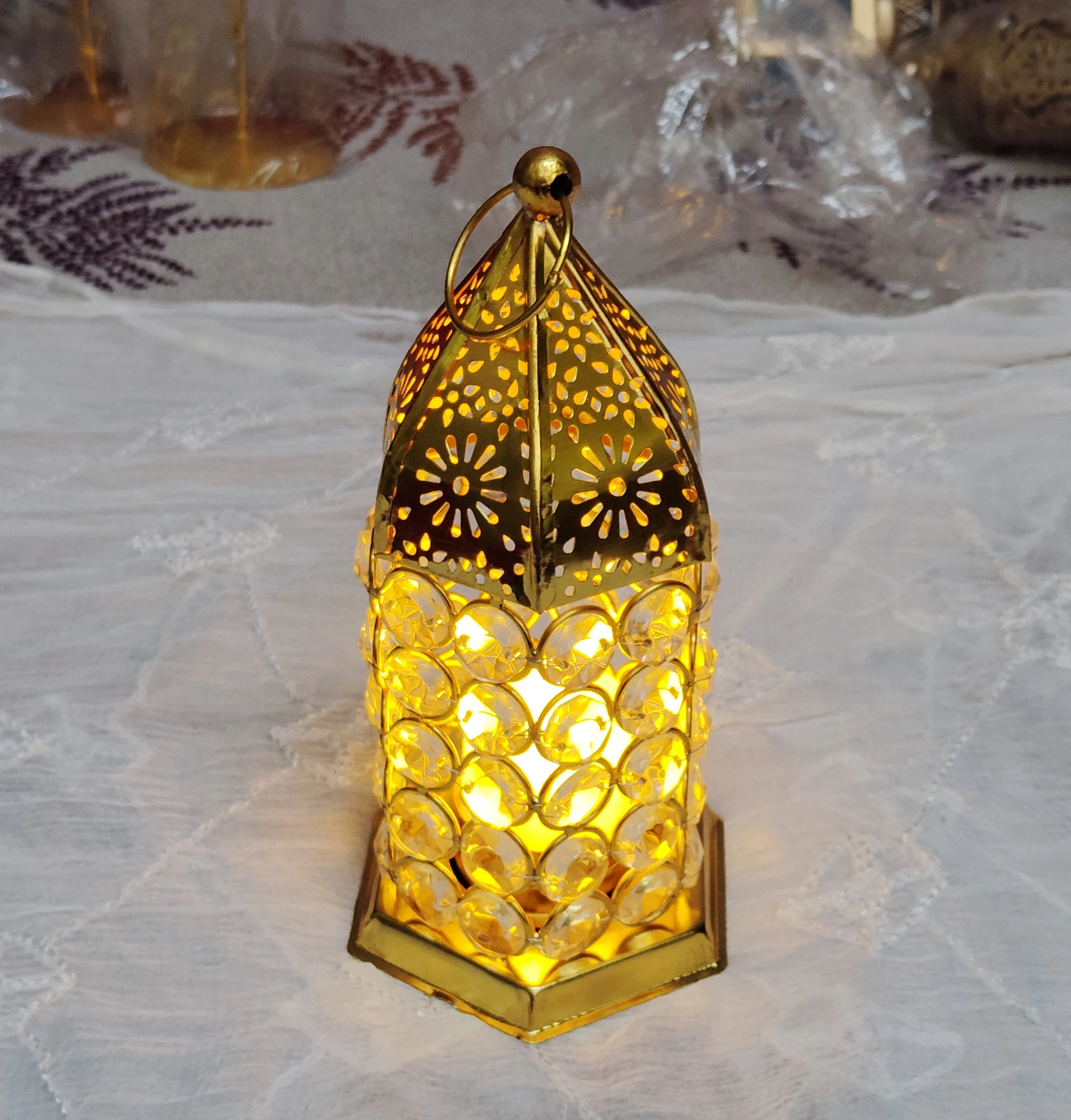 Be the first to review “Crystal Engraved Metal Lantern with Tealight Candle Holder for Home Decor”