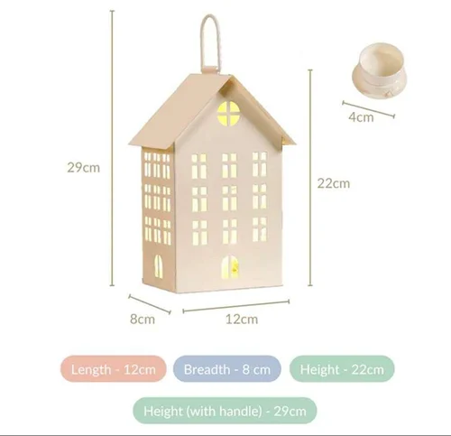 Illuminate celebrations with the charming Festive Decoration House Lantern, crafted from sturdy mild steel and finished with a smooth powder coating. Designed in a house-style structure, it brings a warm festive glow when used with tealights or small candles. Perfect for Diwali décor, Christmas setups, home styling, table decoration, balconies, and gifting. Its playful yet elegant design adds joy to any interior space.
