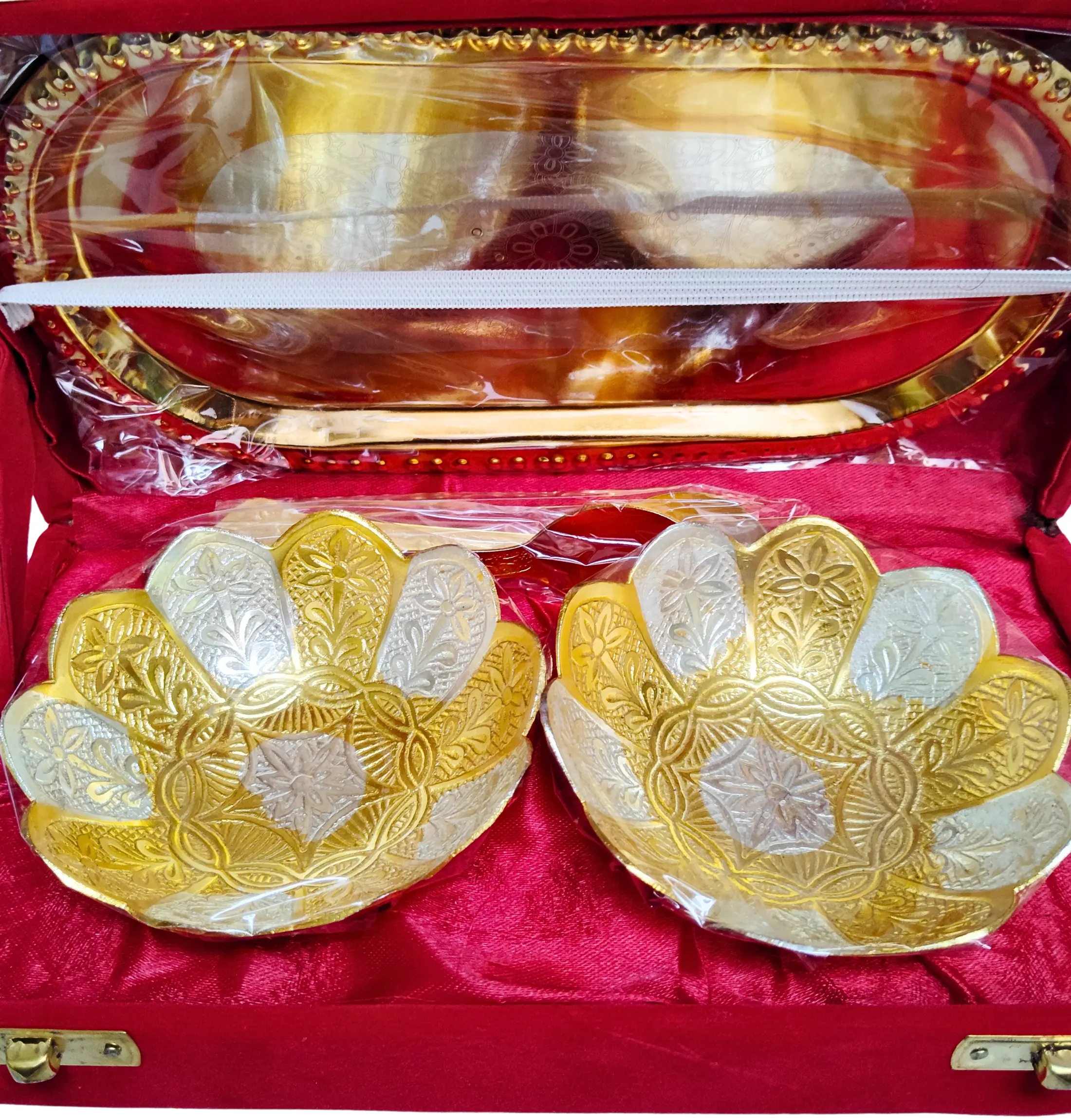 German Silver Golden Plated Metal Bowl Set for Gifting