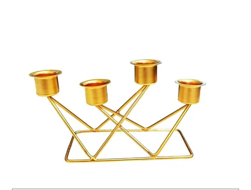 Golden 4-Tealight Candle Holder Decorative Metal Accent