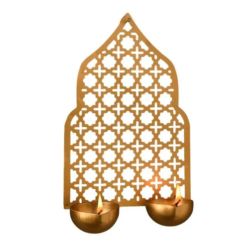 Golden Jharokha Design Candle Holder Decorative Metal Accent