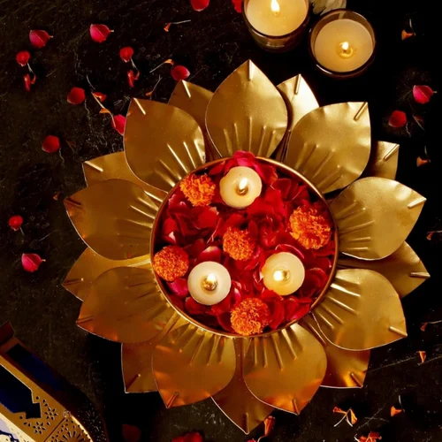 Handcrafted Lotus Flower Urli Golden Iron Decorative Bowl for Festive & Home Décor
