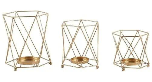 Iron Lantern and Candle Holder Golden Finish Decorative Accent