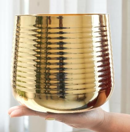 Enhance your décor with the Metal Ribbed Design Planter — a stylish and modern pot crafted from premium mild steel. Finished in luxurious EPL Gold, it features a beautiful ribbed texture that elevates the visual appeal of any corner. Perfect for succulents, indoor plants, or decorative arrangements, this compact planter is ideal for living rooms, work desks, balconies, patios, and gifting purposes.