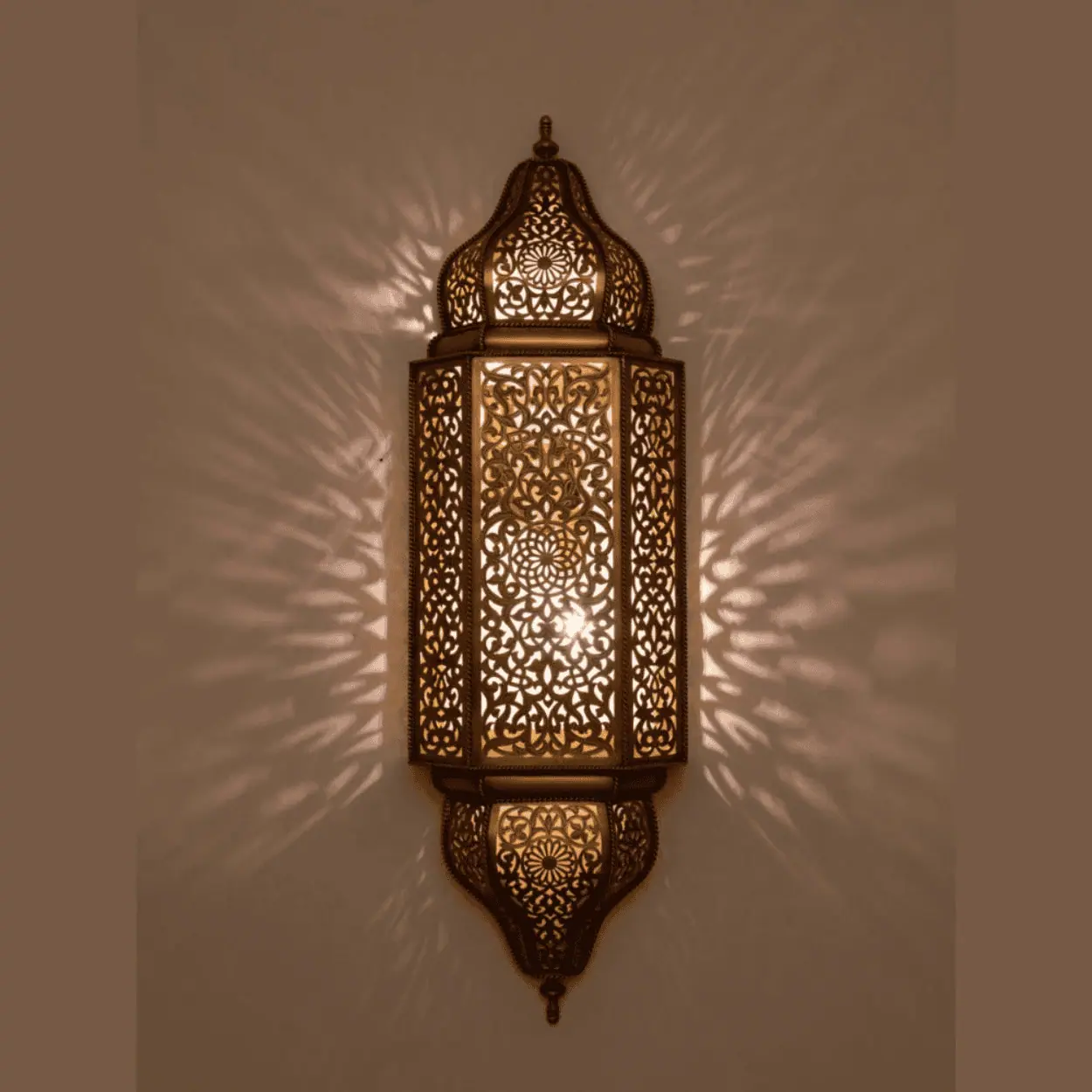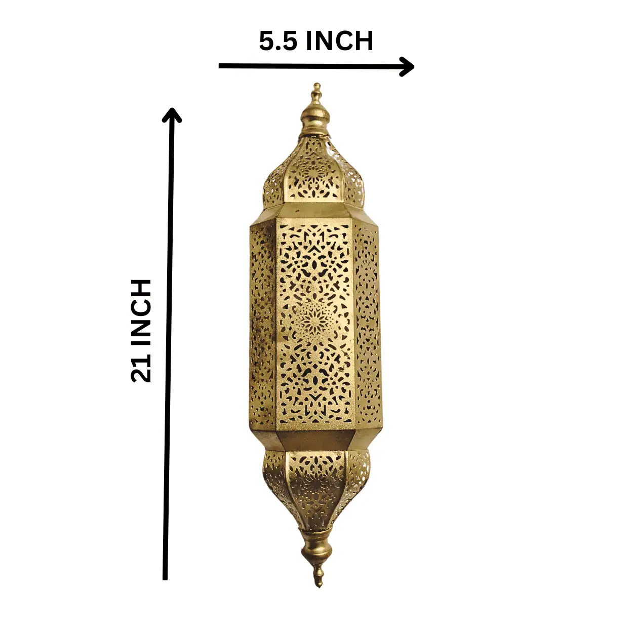Illuminate your space with elegance using these Metal Wall Mounted Hanging Lights, designed for home decor and gifting. Measuring 5.5 x 3.5 x 21 inches, these iron-crafted lights in a gold finish add a touch of sophistication and charm to any wall. Perfect for creating a warm and inviting ambiance, they make a striking addition to living rooms, hallways, or bedrooms. Lightweight yet sturdy, these lights are not only practical but also a thoughtful gift for housewarmings, weddings, or festive occasions.