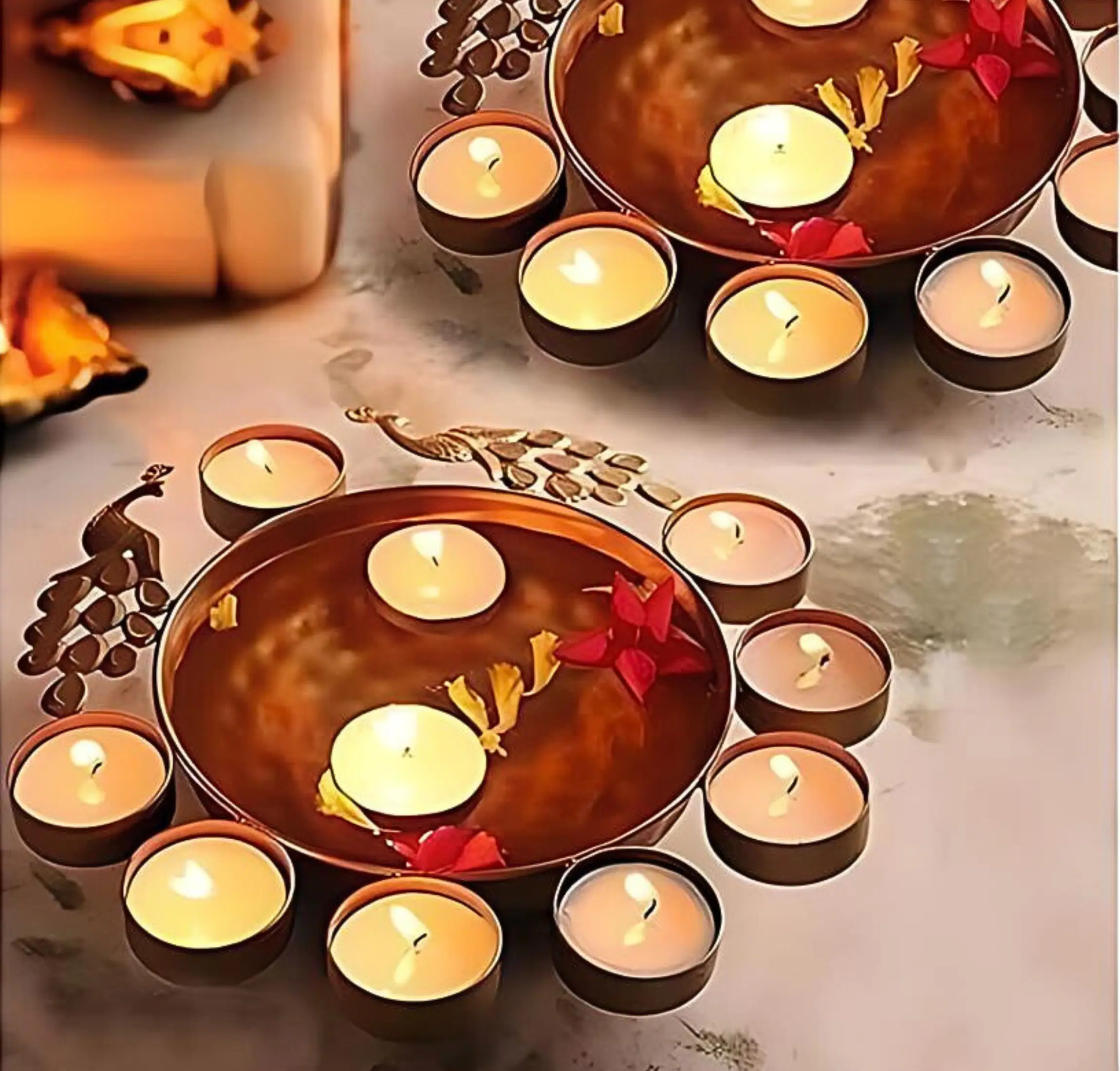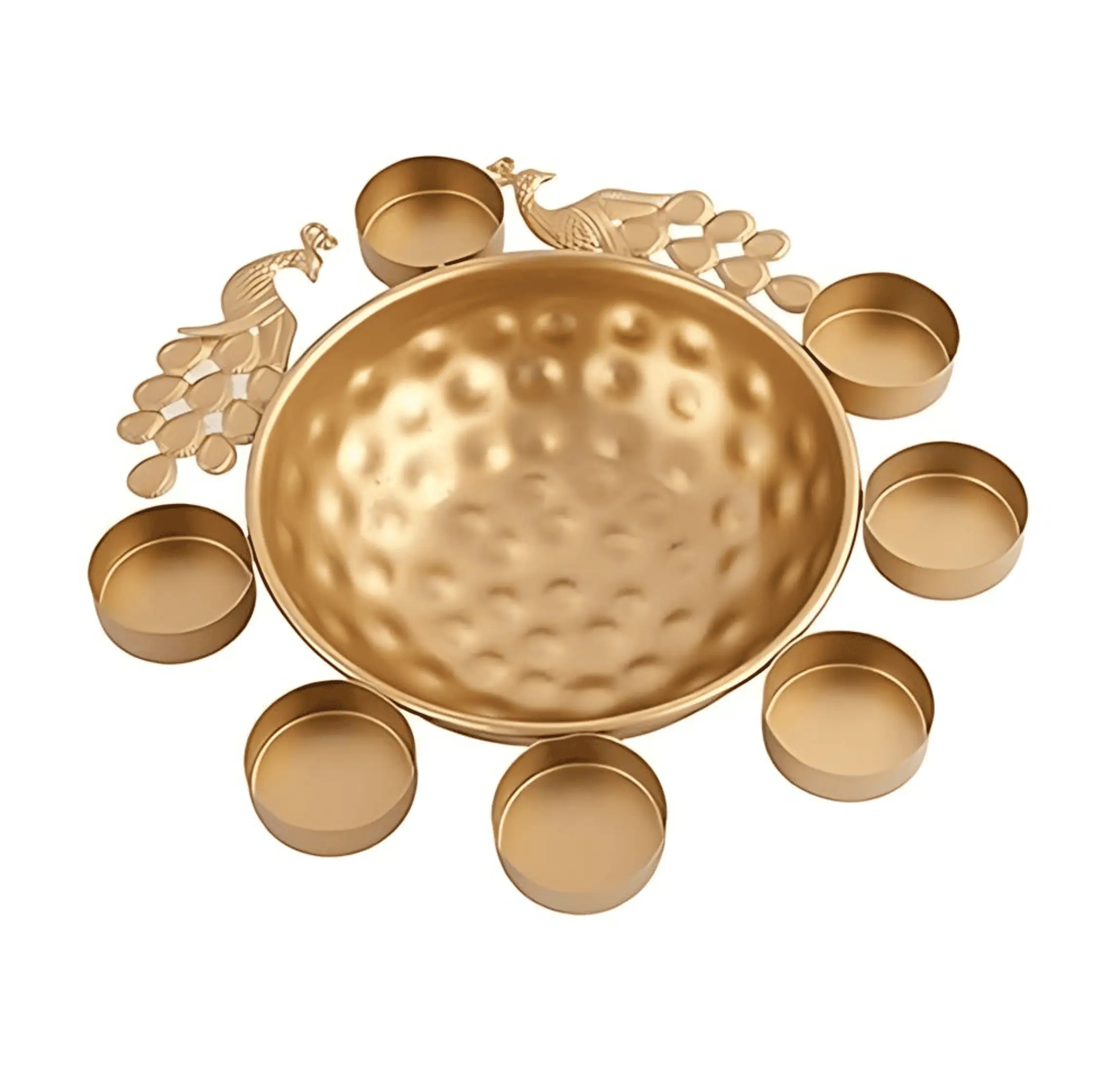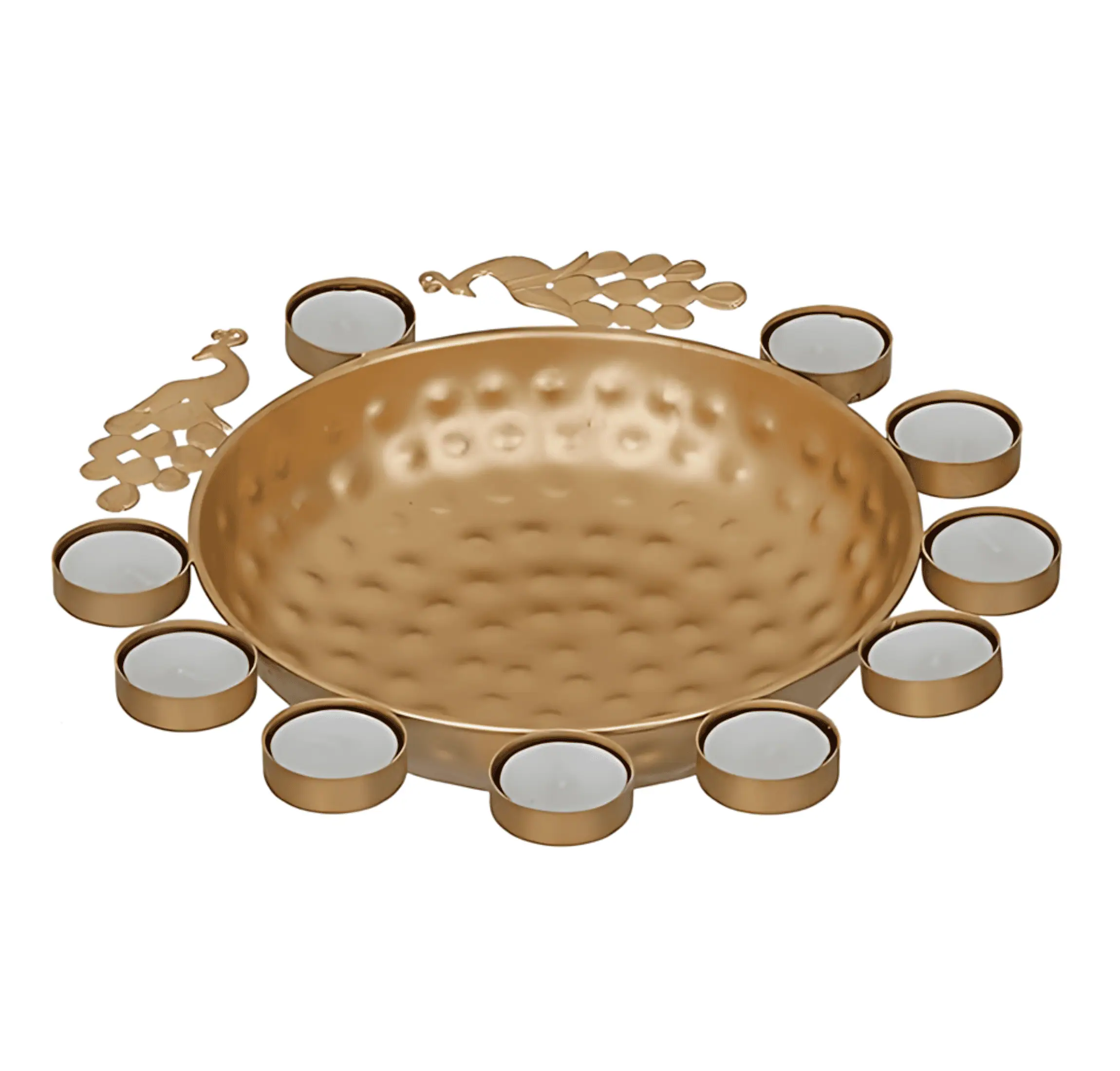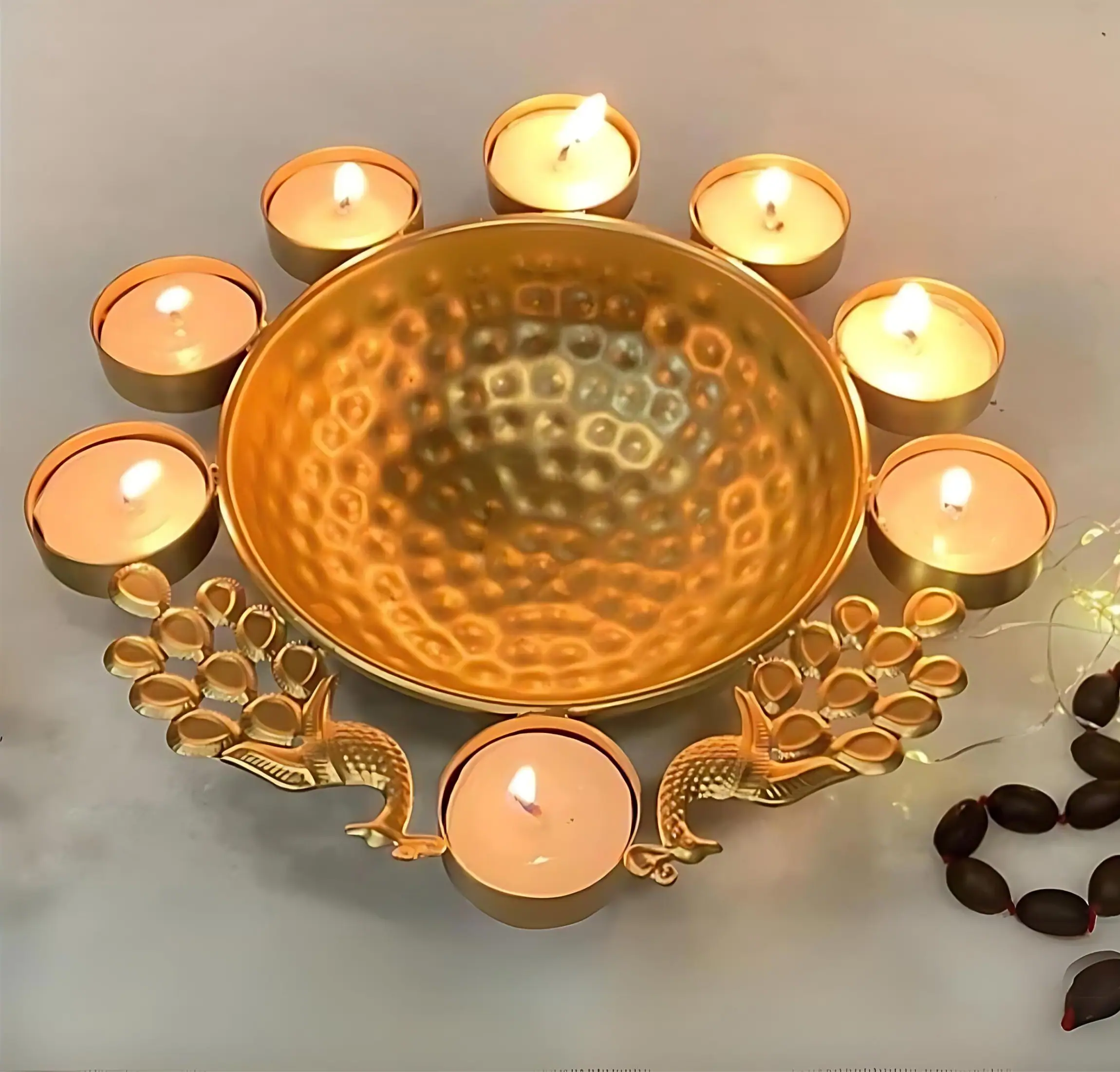 Peacock Urli Bowl Diya & Tealight Candle Holder For Diwali Home Decoration