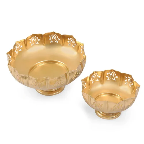 Elevate your décor with this Set of 2 Urli Bowls With Stand. Crafted from durable iron and finished in a luxurious golden tone, these decorative bowls add a touch of elegance to indoor and semi-outdoor spaces. Perfect for floating flowers, succulents, or decorative arrangements, they beautifully enhance living rooms, patios, balconies, or office interiors. The included stands provide a stylish elevated display for added charm.
