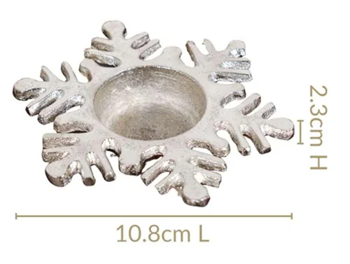 Bring a festive sparkle to your home with the Silver Snowflake Tea Light Candle Holder, crafted from lightweight aluminum with a shimmering silver finish. Its intricate snowflake design adds a winter-inspired charm, perfect for Christmas décor, table centerpieces, living rooms, and gifting. Ideal for tealights, it creates a warm and festive glow in any setting.