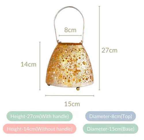 Illuminate celebrations with the Stars & Moon Festive Metal Lantern, beautifully crafted from premium mild steel and finished in an elegant golden tone. The celestial cutwork design creates magical light patterns when lit, making it a perfect décor piece for festivals, weddings, home interiors, balconies, and gifting. A charming lantern that enhances ambience with warmth and festive brilliance.