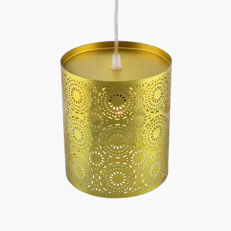Illuminate your home with the enchanting glow of the Twilight Hanging Ceiling Lamp, a handcrafted Moroccan filigree pendant that brings intricate detailing and warmth to your interiors. Made from mild steel with a rich golden and copper-toned finish, this hanging lamp blends artisanal elegance with modern appeal.